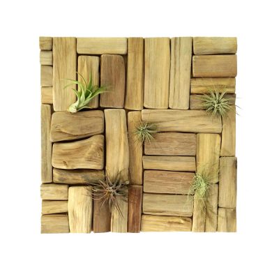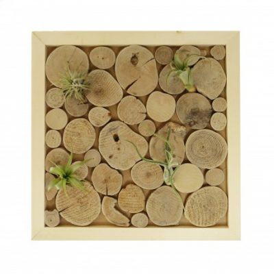 Dat luchtplantjes en houten accessoires zijn een bijzondere combinatie. De plantjes komen bijvoorbeeld uitstekend tot hun recht in een levend schilderij van een vurenhouten frame met plakjes drijfhout. Het resultaat is een intrigerend geheel van natuurlijke materialen dat karakter geeft aan vrijwel elk plekje in huis.