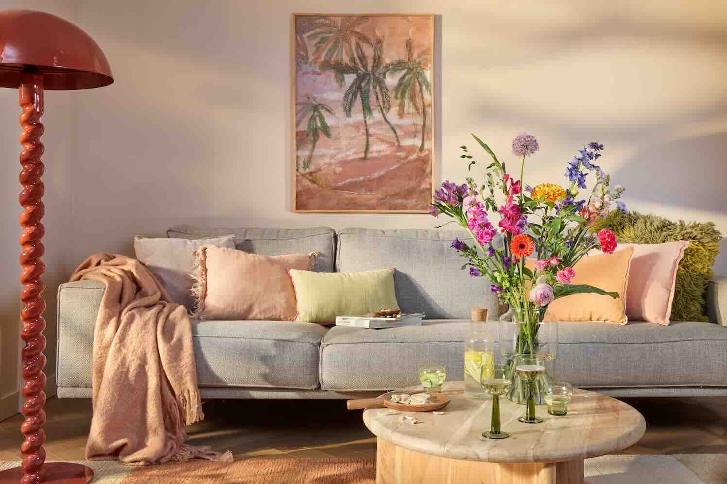“Verwacht in 2026 een explosie van kleur,” vertelt Suzanne enthousiast. “Blauw blijft een zeldzame favoriet; en ook volgens trendforecaster WGSN domineren blauwtinten als Transformative Teal, Blue Aura en Jelly Mint het interieur. Maar ook het gedurfde Electric Fuchsia en aardse Amber Haze spelen een hoofdrol. Deze trendkleuren vormden de inspiratie voor de drie moodboards die centraal staan in de voorjaarscollectie: Neon Rebellion, Soothing Aura en Earthly Reference.
