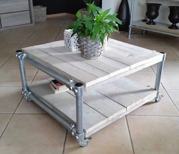 Mooi design van hout en steigerbuizen.